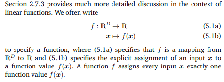 함수의 개념은 $f: \mathbb{R}^{D}$ $\rightarrow$ $\mathbb{R}$ 처럼 $D$차원의 벡터를 input으로 받아 스칼라 값으로 매핑하게 되고, 이미 알고 있는 정의역, 공역, 치역의 개념을 떠올리면 이해하기 쉽다.