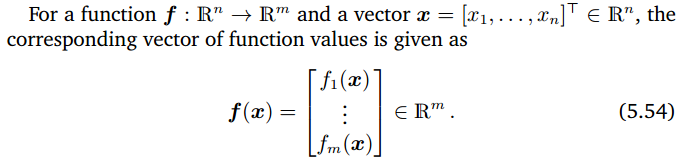 지금까지 $\mathbb{R}^{n}$을 real value로 매핑하는 함수를 미분하였는데, 지금부터는 real value가 아닌 $\mathbb{R}^{m}$으로 매핑하는 함수를 미분한다. 즉 미분 값이 vector형태로 나오는 함수를 미분한다.