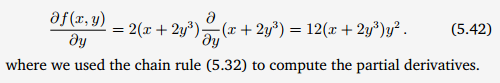 아래의 예제 5.6은 각각 $x, y$ multivariate variables에 대한 Partial Derivatives를 구한 것이다.