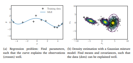 (a) 와 같은 경우는 + 모양의 관측치를 잘 설명해줄 수 있는 최적의 그래프를 구해주어야 한다. 이러한 함수를 likelyhood라는 함수로 정의하고 이를 최대화하는 과정을 겪어서 파란색 선과 같은 최적의 curve를 가지게 된다.