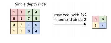 아래의 그림을 통해서 직관적으로 이해가 가능하다. max pool with 2x2라 되어있는데, max pooling은 영역에서 max값 하나만 뽑겠다는 것이다. average pooling도 있다.