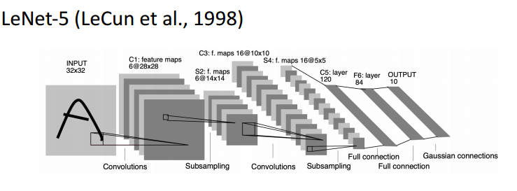 input을 보면 32x32 인 2 dimension 데이터를 직접 사용한다. 가운데를 보면 convolutions라는 layer들이 쌓여있고, 후반부에 Full connection은 dense layer를 말한다. 즉 하나 이상의 Convolutional layer를 가지고 있으면 convolutional neural network가 된다.