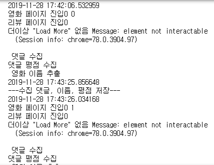 위의 코드처럼 댓글의 개수와 평점의 개수가 같은지 확인해보고 잘 수집되었는지 확인해보는게 반드시 필요하다는 것을 느꼈습니다.