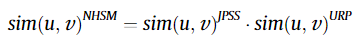 $sim(u,v)^{NHSM}$ 는 $sim(u,v)^{JPSS}$와 $sim(u,v)^{URP}$의 곱으로 구한다.