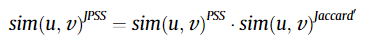 JPSS 유사도는 자카드 유사도와 PSS 유사도를 곱한 것이다. 자카드 유사도는 이미 알고 있는 자카드 유사도가 맞으며 PSS 유사도는 아래와 같다.