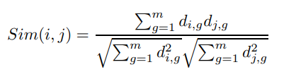 [2]는 Item 간의 유사도를 기반으로한 Item based collaborative filtering 알고리즘에서 아이템간의 유사도를 측정함에 있어서 장르, 감독 변수를 사용한다. 장르와 감독변수를 토대로 유사도를 구하는 방법은 아래와 같다.