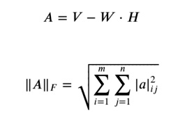 정확하게 초기 행렬을 재현해내는 것은 불가능하지만 최대한 가깝도록 최적화를 한다. 이 때 사용하는 것이 Frobenius norm 척도이고, 이는 벡터간의 거리를 잴 때 사용되는 유클리디안 거리를 행렬로 확장한 것이라 생각하면 된다.