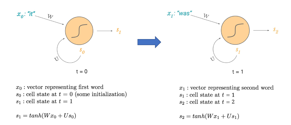 이부분에서 recurrent 한 representation이 존재하여 RNN으로 불린다.