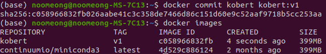 *kobert 컨테이너를 kobert라는 레포에 태그가 v1인 이미지를 생성하였다.