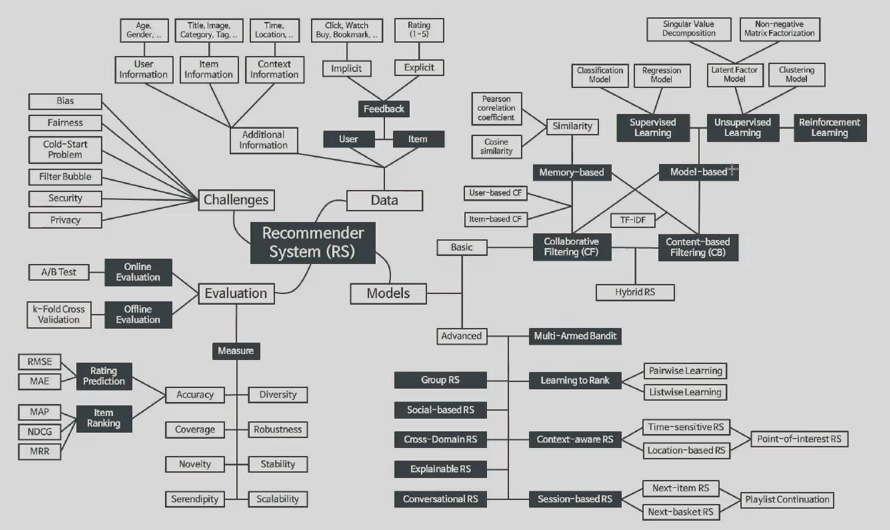 - 다양하게 알아야한다. 도메인이나 목적에 따라서 추천이 잘 되는지 평가하는게 중요하기 때문이다.