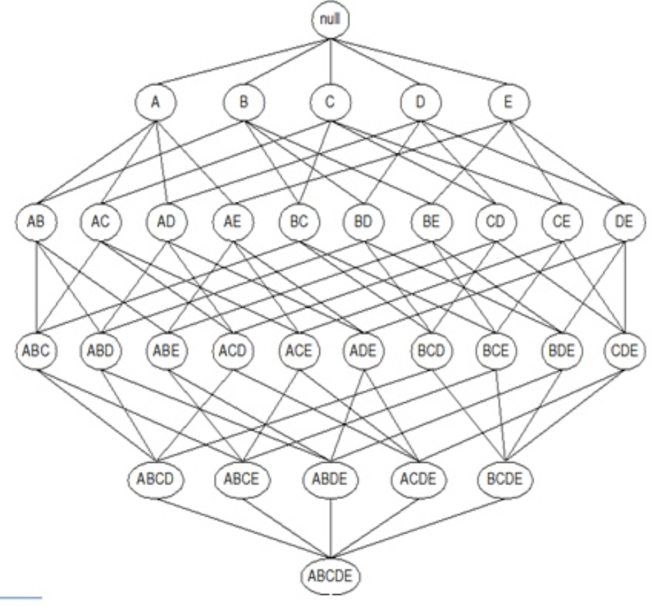 - 연관분석의 단점을 보완하기 위해 아이템셋의 증가를 줄이기 위한 방법으로 빈번하지 않은 아이템셋은 하위의 경우의 수도 빈번하지 않는다는 가정으로 아이템셋을 줄일 수 있다.