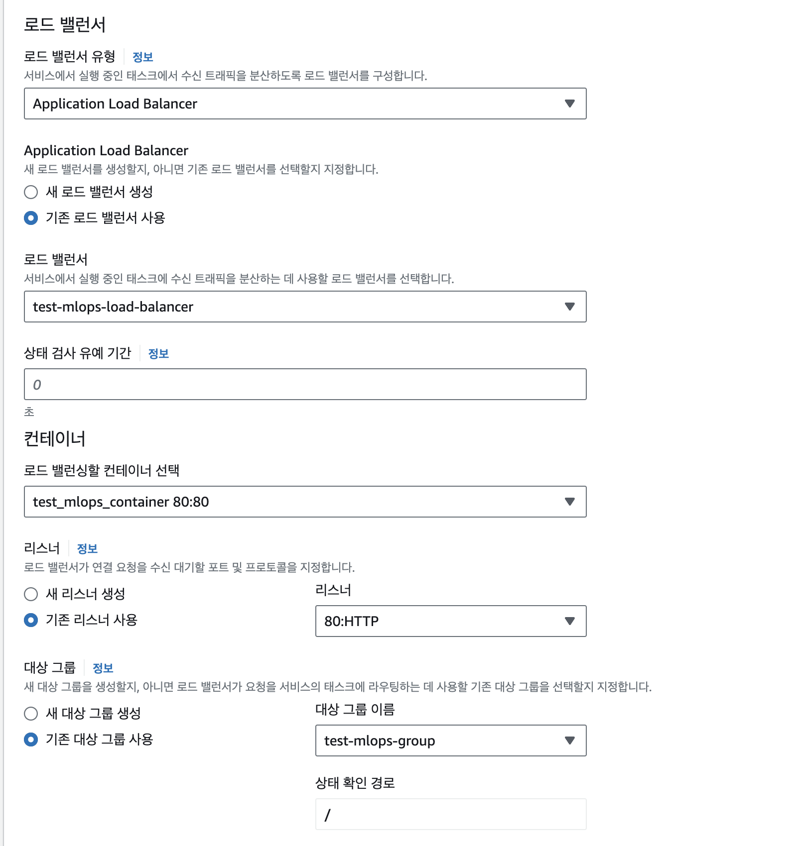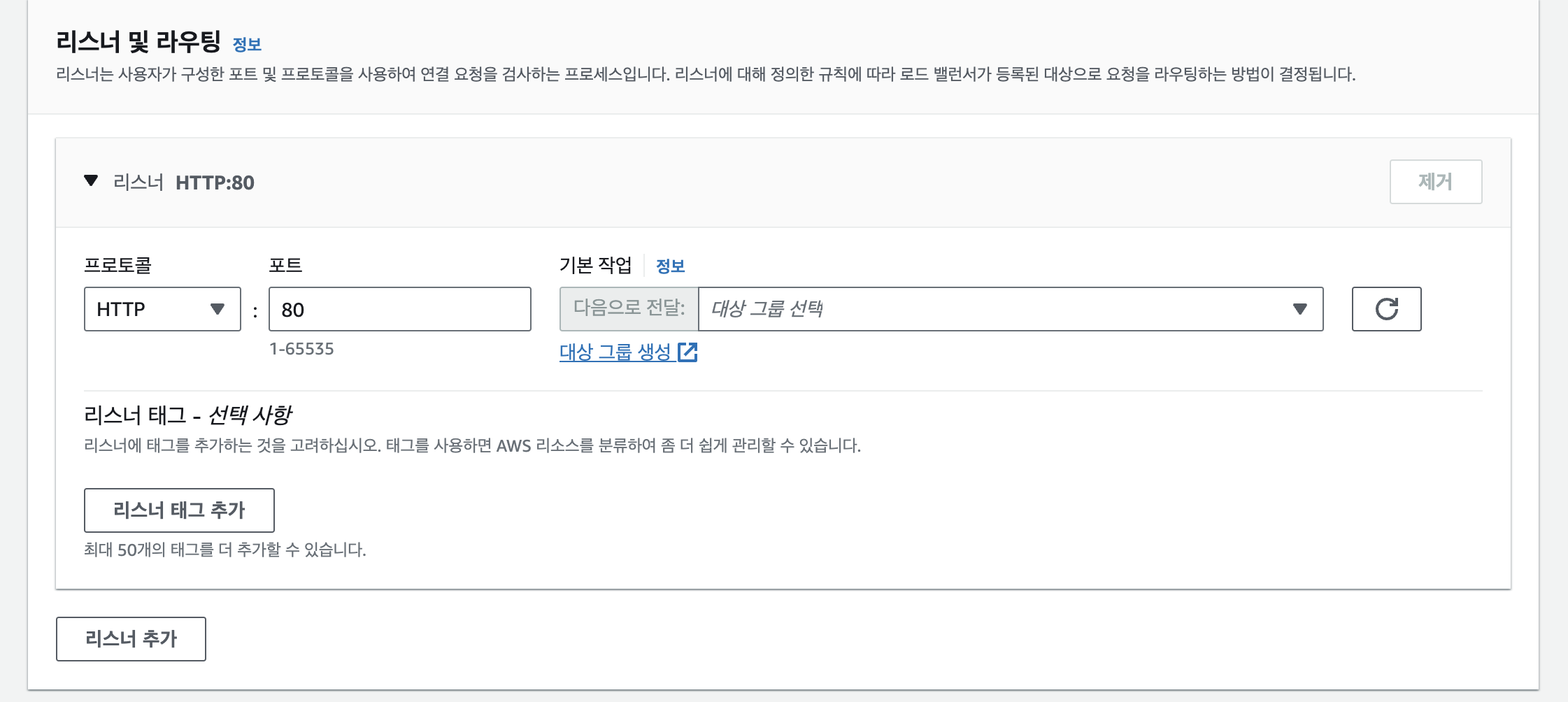 >> 기존에 로드밸런서를 사용하고, 컨테이너에 리스너도 대상 그룹도 모두 기존에 만들었던 것을 사용한다.
