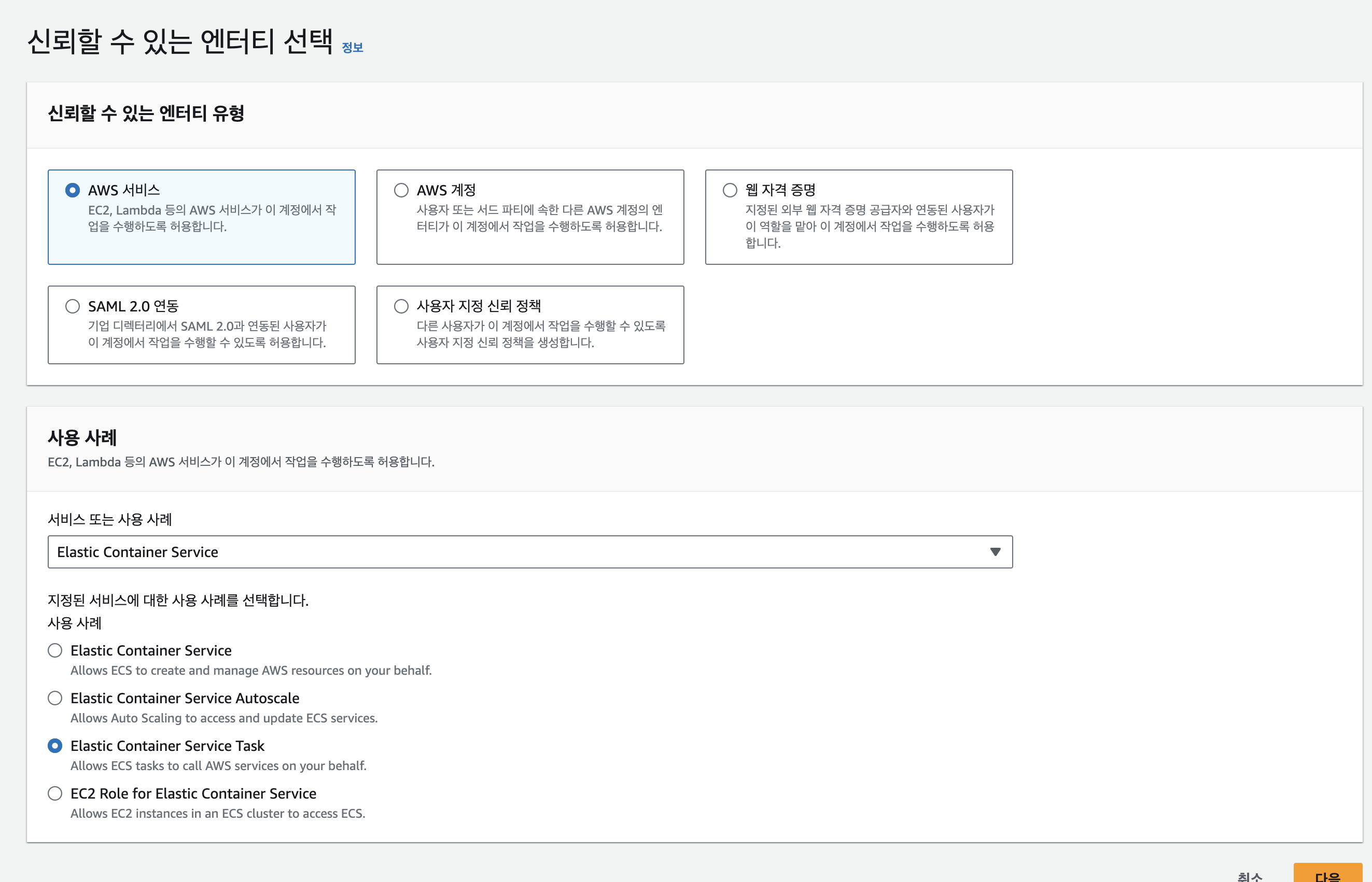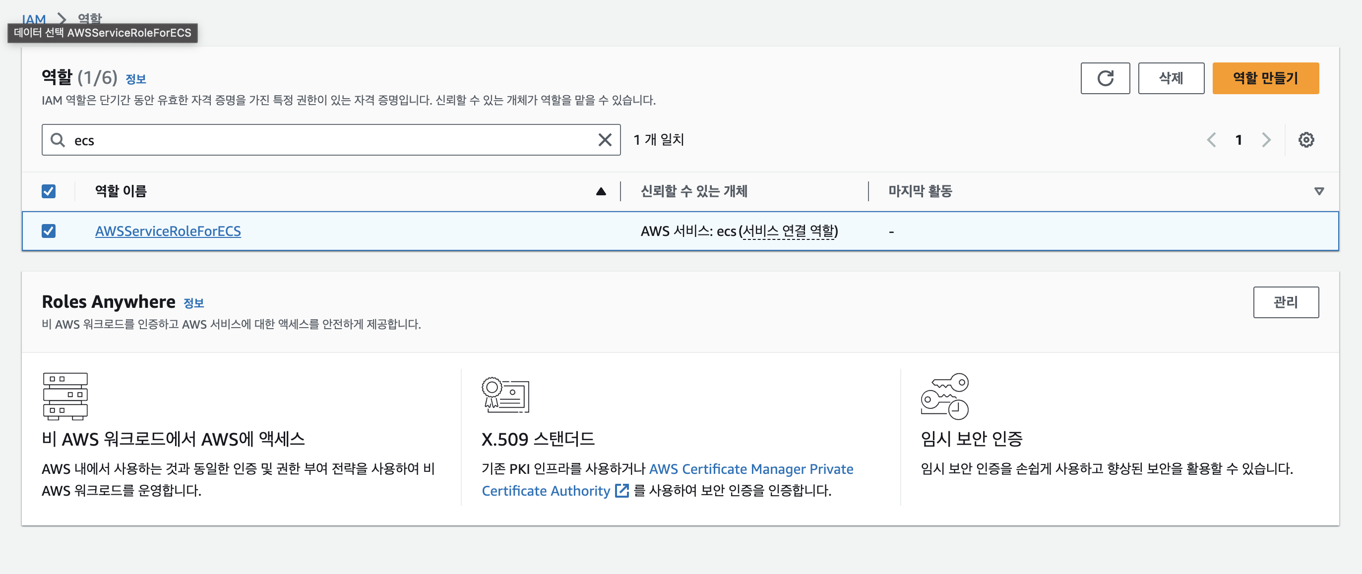 >> AWSServiceRoleForECS에 대한 역할 만들기