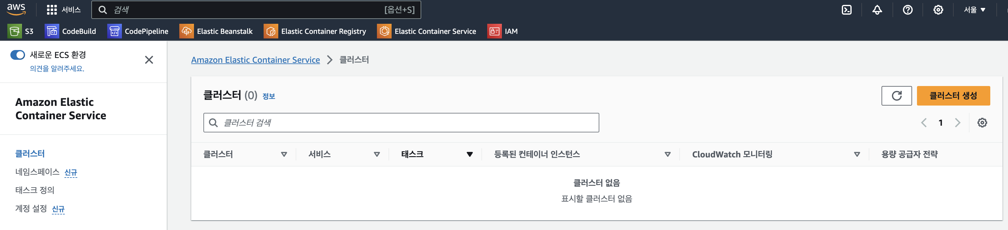 (1) ECS 에서 새로 클러스터를 생성한다.