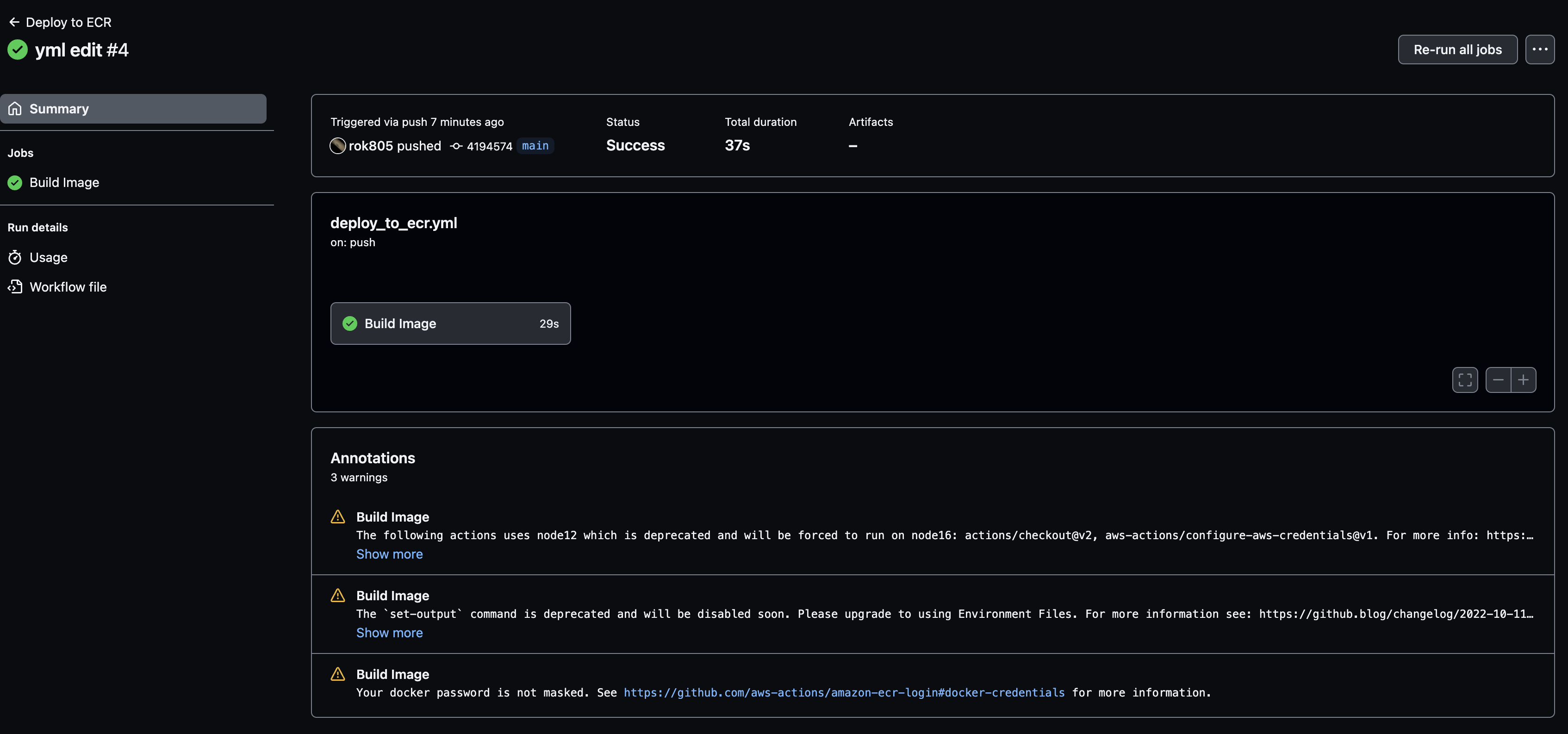 - name: Login to Amazon ECR