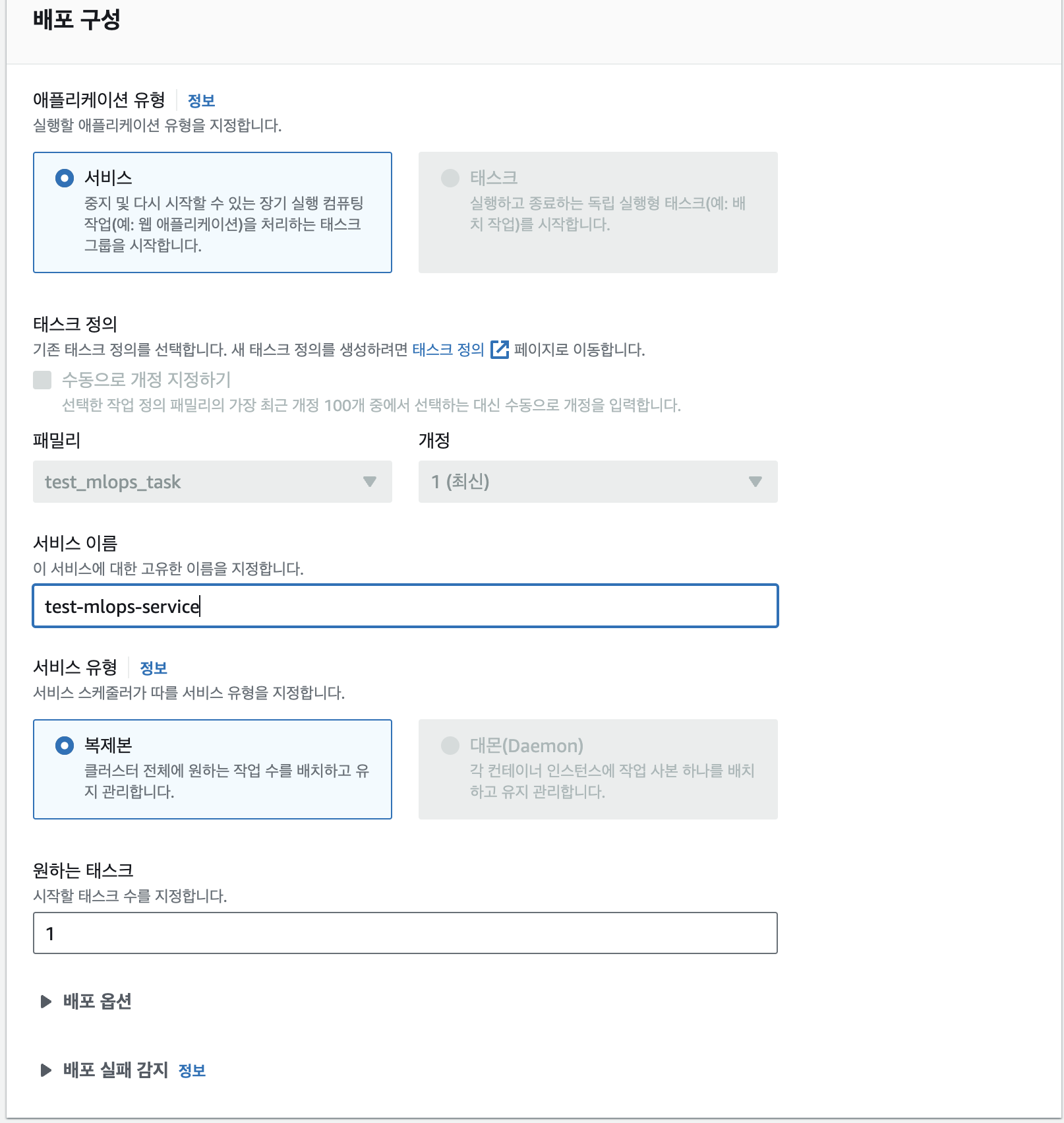 만들던 Task에서 서비스생성으로 들어간다.