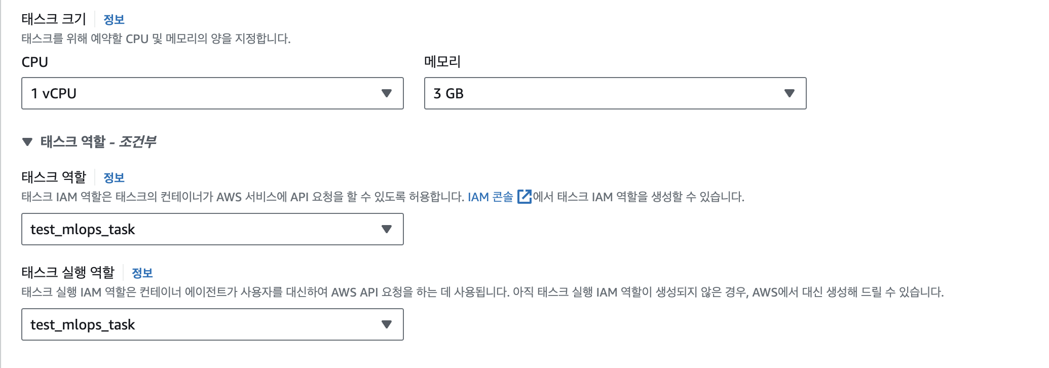 >> 가운데 secrets를 볼 수 있고, 가장 아래에 run 부분은 aws 콘솔에서 실행할 수 있도록 했다.