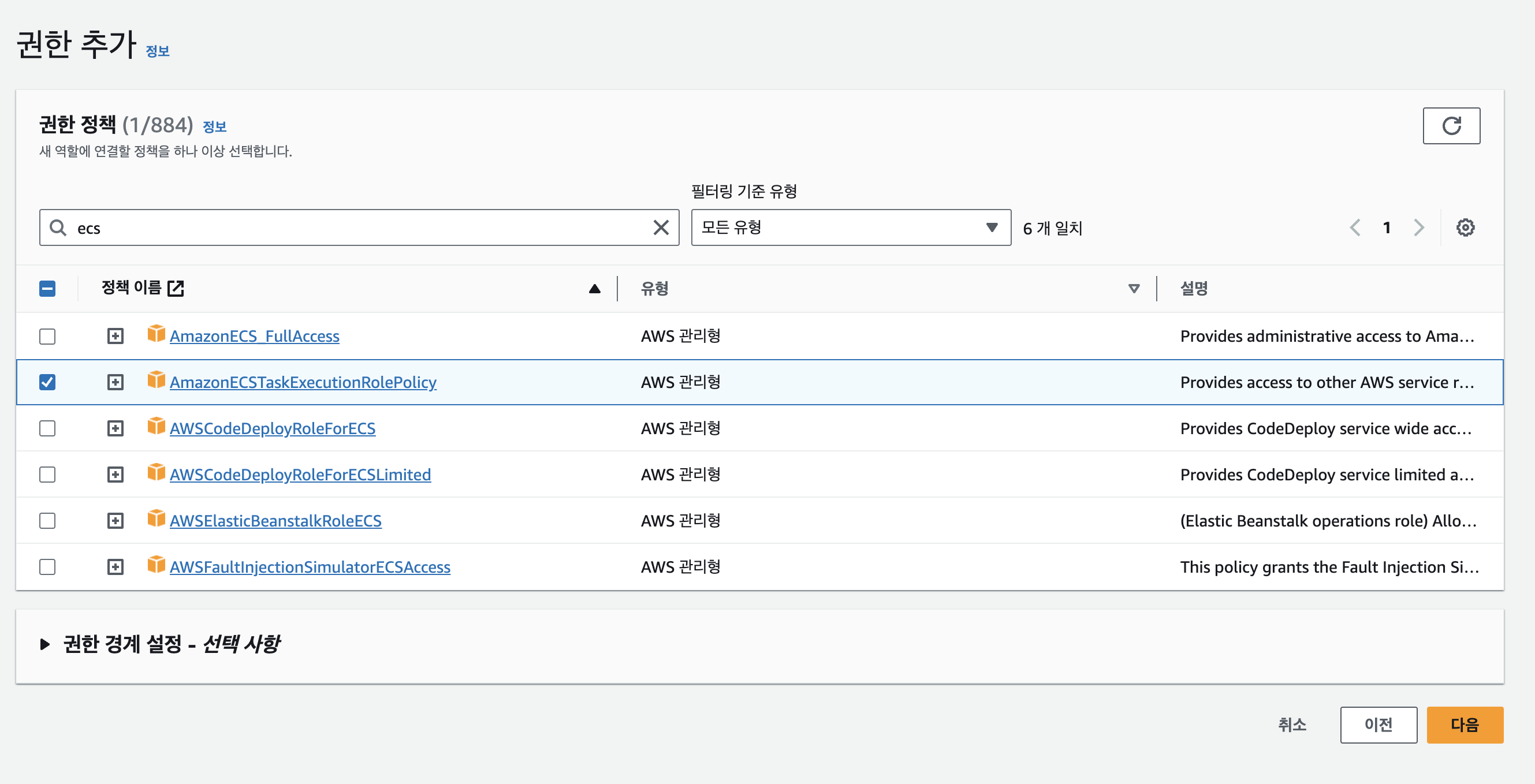 >> AmazonECSTaskExecutionRoelPolicy로 생성한다.