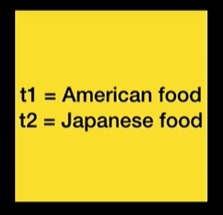 결과적으로 t1과 t2는 각각 미국,일본 음식을 나타낸 것을 잠재적으로 알 수 있다.