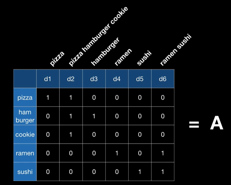 'Minsuk Heo' 유투브에서 얻은 예시를 통해 LSA의 개념을 공부해보자.
