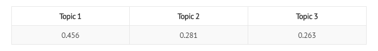 아쉽게도 위의 단어/문서를 가지고 확률 값을 구하는 예시가 없고, pLSA 결과로 얻어낸 가중치 행렬이었던 $P(z)$를 보여준다. 차원(사용자지정)은 3차원으로 설정하였다. 그래서 토픽이 3개만 나온 것이다.