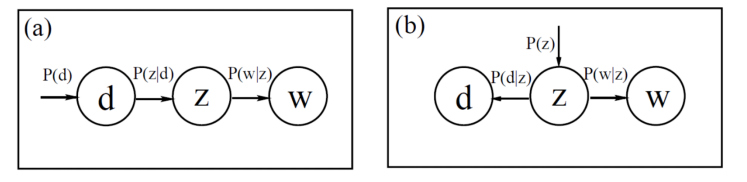 아래의 그림 (a), (b) 는 pLSA의 과정을 나타낸 것이다.