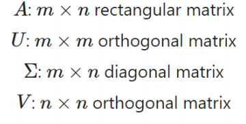 SVD라는 것이 고급 선형대수학에 포함되어 있는 파트인데, 완벽하게 이해하기에는 기초 선형대수, 선형독립, 직교 등등 선행학습이 필요하다. 그러므로 어떤식의 알고리즘인지 완벽하진 않더라도 짚고 넘어가보도록 한다.