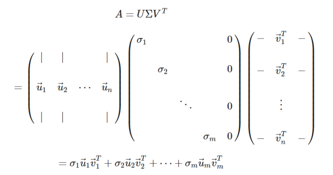 - 다시말해, SVD를 이용해서 임의의 행렬 A를 정보량에 따라 여러 layer로 쪼개서 생각할 수 있게 해준다.