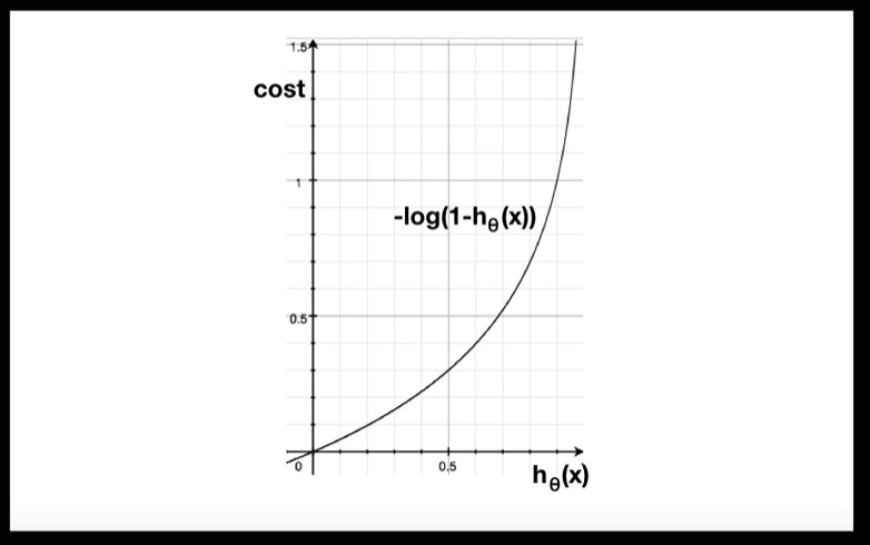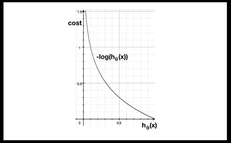 위 식을 통해 본다면 비용은 $(h_{theta}(x), y)$ 이며, 이를 최소화 해줘야한다. 비용을 그래프로 나타내면 아래와 같다.