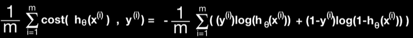 그에 대한 대답으로는 $cost(h_{\theta}(x),y) = [-(y)log(h_{\theta}(x))] +[-(1-y)log(h_{\theta}(x))]$ 라는 식이 나온다. $y$가 1일 때랑 0일 때랑 각각 우변에서 좌항 우항이 각각 사라지면서 이전의 두개의 함수를 한번에 쓸 수 있게 된다.