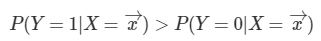 우선 가장 간단한 방식은 다음과 같다. 범주가 0일 확률보다 크다! 그럼 입력벡터$x$는 범주 1이다. 라고 말하는 방법.