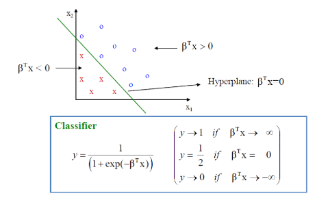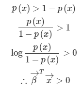 마찬가지로 $\beta^{T}x < 0$ 이면 범주 0으로 분류됩니다.