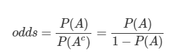 Odds란 임의의 사건 $A$가 발생하지 않을 확률 대비 일어날 확률의 비율을 뜻하는 개념이다.