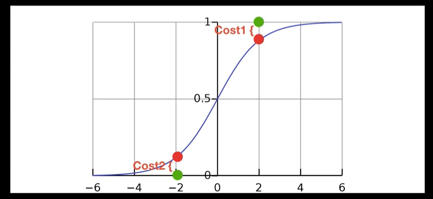 이제 저 경계면을 가장 잘 놓기 위해서 비용함수를 최소화 하는 과정을 알아야한다.