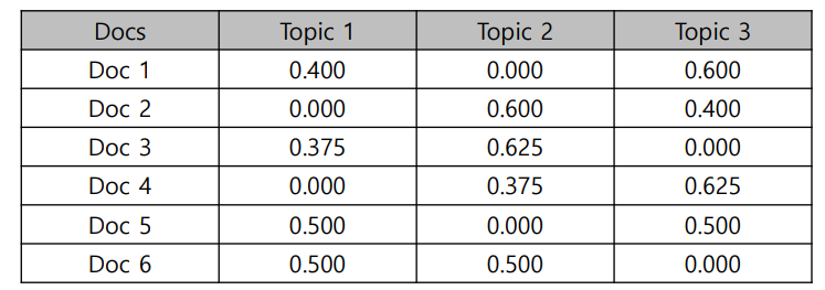 LDA수행시 토픽이 몇 개가 존재할지 가정하는 것은 사용자가 해주어야한다. 즉, 토픽 개수를 지정해주는 것이다. 이렇게 하이퍼 파라미터 값을 선택해주면 LDA는 각 문서의 토픽 분포와 각 토픽 내의 단어 분포를 추정한다.
