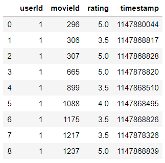 CF에 우선 필요한 데이터인 ratings 데이터를 주로 사용하기 때문에 ratings 데이터 위주로 코드를 구현하였다.