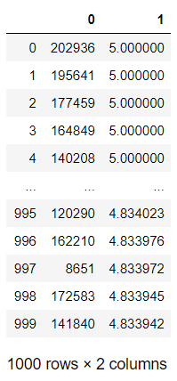 추천 결과는 아래와 같다. 1000개 까지 출력하도록 하였다.