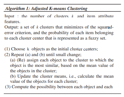 사용자 프로필을 표현했으면, 이제 사용자 프로필을 그룹화하여 그룹화 행렬을 형성하는 것이다. 이를 위해 모든 사용자에 대해 집단(clique)을 구축한다. 이를 그룹화하기 위해 단순하고 빠른 클러스터링 방법인 K-means 알고리즘을 일부 조정하여 적용한다. 아래의 그림을 보자.