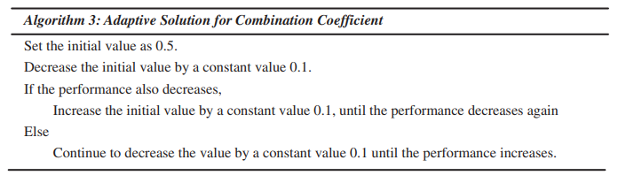 예시적으로 추천시스템의 초기 단계에서 사용자 등급의 부족으로 인해 그룹 등급 행렬이 중요한 역할을 한다. 따라서 그룹 등급 행렬의 가중치는 그 당시에 상대적으로 높히 측정된다. 나중에 사용자 등급의 비율이 많아짐에 따라 그룹 등급 행렬의 가중치도 감소하게 된다. 따라서 아래그림(알고리즘 3)에서 설명하는 최적 값을 자동으로 찾기 위한 간단한 적응형 해를 제안한다.