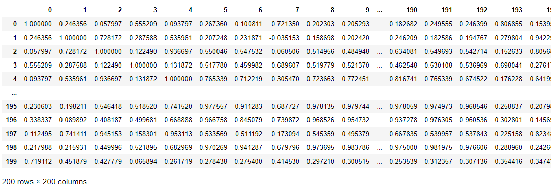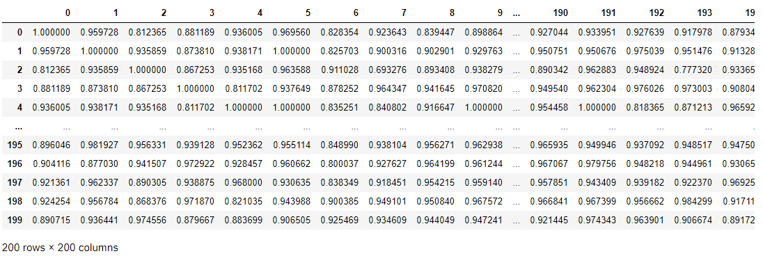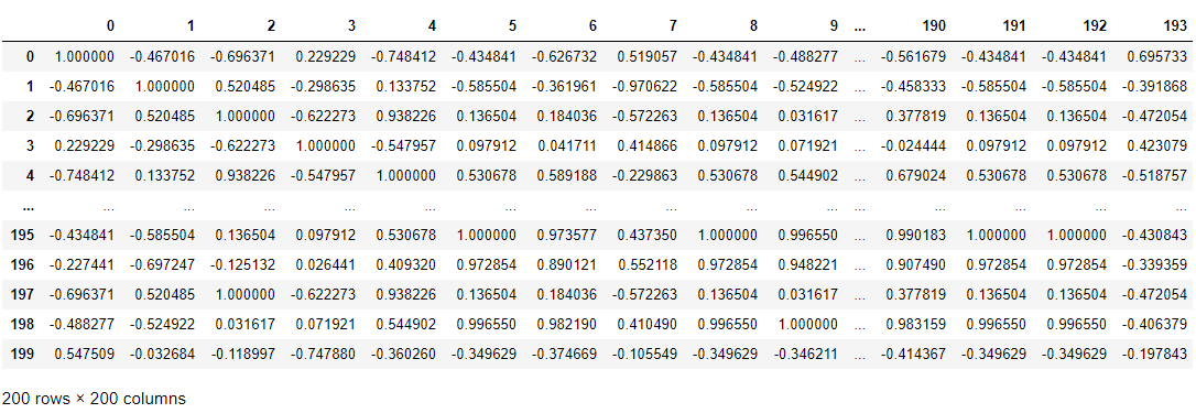 코드가 간결하지 못하여 위에 상관계수를 구하나 아래의 것을 구하나 각각 1분정도 걸린다. (200케이스에 대해서...) 만약 전체를 다한다면 정말 오래 걸릴 것이다. 전체에 대해 다 하는 것은 최종적으로 결과로 나타내도록 하였다.