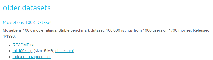 https://grouplens.org/datasets/movielens/ 사이트에 있는 무비렌즈 데이터를 불러와 누구나 사용할 수 있다.