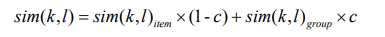 유사도를 구한 두 행렬을 가지고, 하나의 유사도 행렬로 만들어 주는 작업을 시행한다. 이 논문이 제안한 선형결합 방법은 아래의 식에 따라 계산하면된다. $c$ 값은 파라미터 값이고, 초기에 0.5로 각각 가중치를 같게 준다. 이후에 $c$를 0.1씩 감소시키면서 추천시스템의 성능을 봐가면서 조절한다. 왜 감소먼저하냐하면 초기에는 item rating 행렬이 sparse할 수 있다. 하지만 이는 점점 시간이 흘러 사용자들의 평점으로 채워질 것이고, 갈수록 가중치를 더 주겠다는 의도로 해석했다.