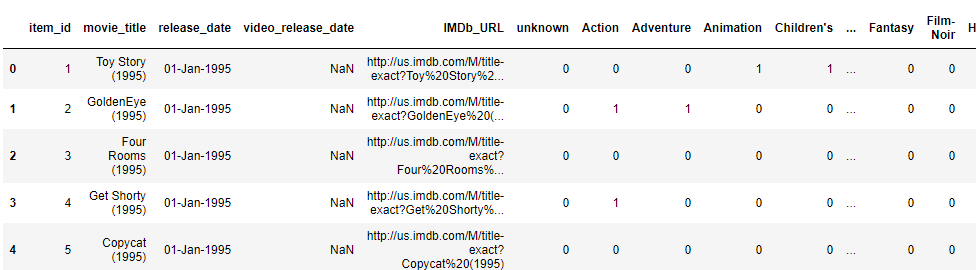 movie = pd.read_csv("u.item.txt",sep='|', names=['item_id','movie_title','release_date','video_release_date',