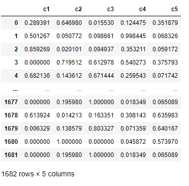 pro_d = pd.DataFrame(pro, columns=['c1','c2','c3','c4','c5'])