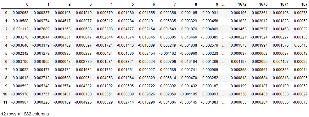 sqrt_Sigma_mul_VT = pd.DataFrame(np.matmul(Sigma_sqrt, VT))