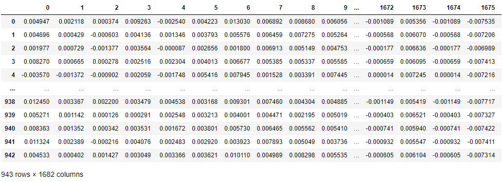 for j in range(len(R_reduced.columns)): # 모든 아이템 루프