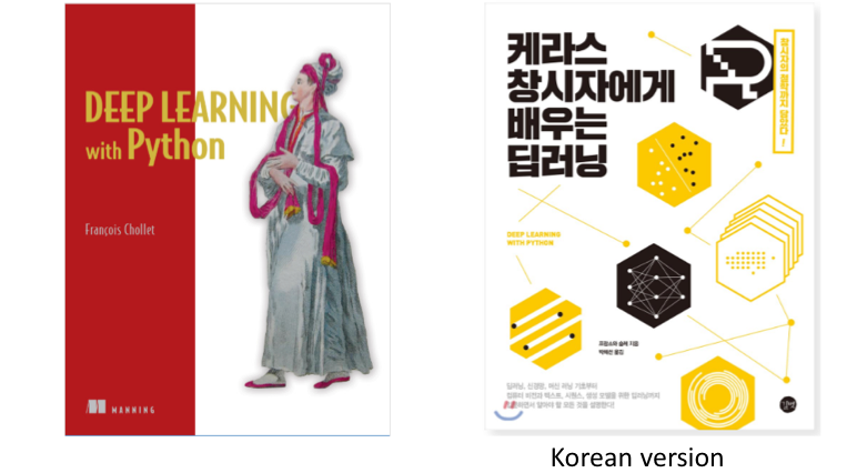 위의 그림은 딥러닝 공부를 위한 추천 책이고, 딥러닝 구현에 tensorflow 패키지를 사용한다.