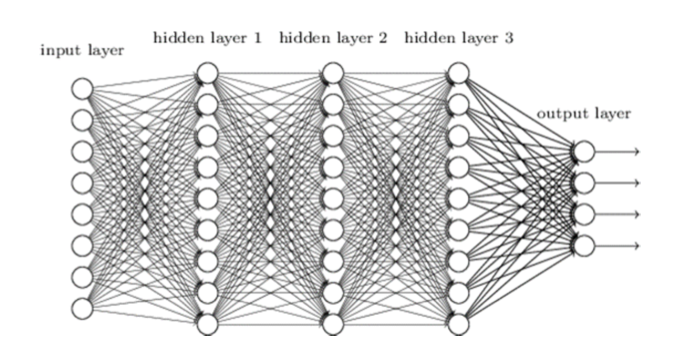 뉴럴 네트워크는 위의 그림의 노드에서 일어나는 단순한 연산을 바로 아래의 네트워크 모델을 통해 서로 복잡하게 연결되어 있는 네트워크 모델이다. 단순 연산하는 노드들이 복잡하게 얽혀있는 것이다. 복잡한 알고리즘이다.