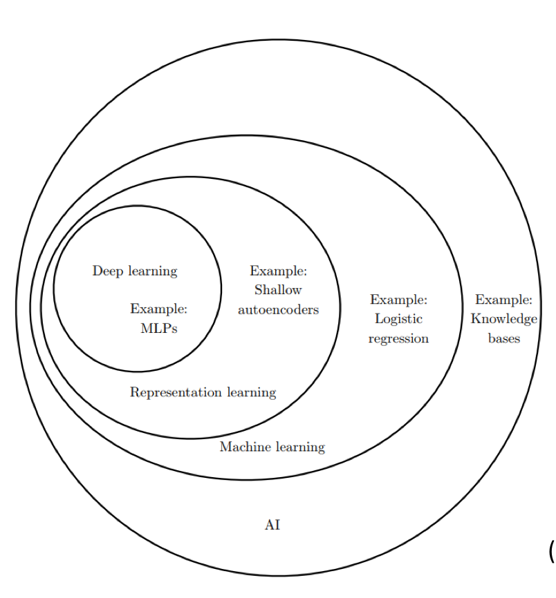 위의 그림은 AI를 벤다이어그램 형식으로 도식화한 그림이다. AI라는 것은 딥러닝이랑 같은 개념은 아니다. AI라는 개념은 상당히 큰 개념이며 이 하에 실현하기 위한 다양한 방법들이 존재하는 것이다.