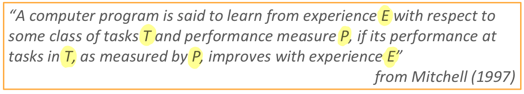E, T, P 는 각각 Experience 경험. Task 작업. Performance 성능. 을 나타낸다.